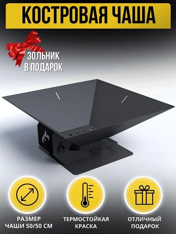 Костровая чаша-мангал Металл и Пламя, сталь 3мм, 50см х 50см, с зольником
