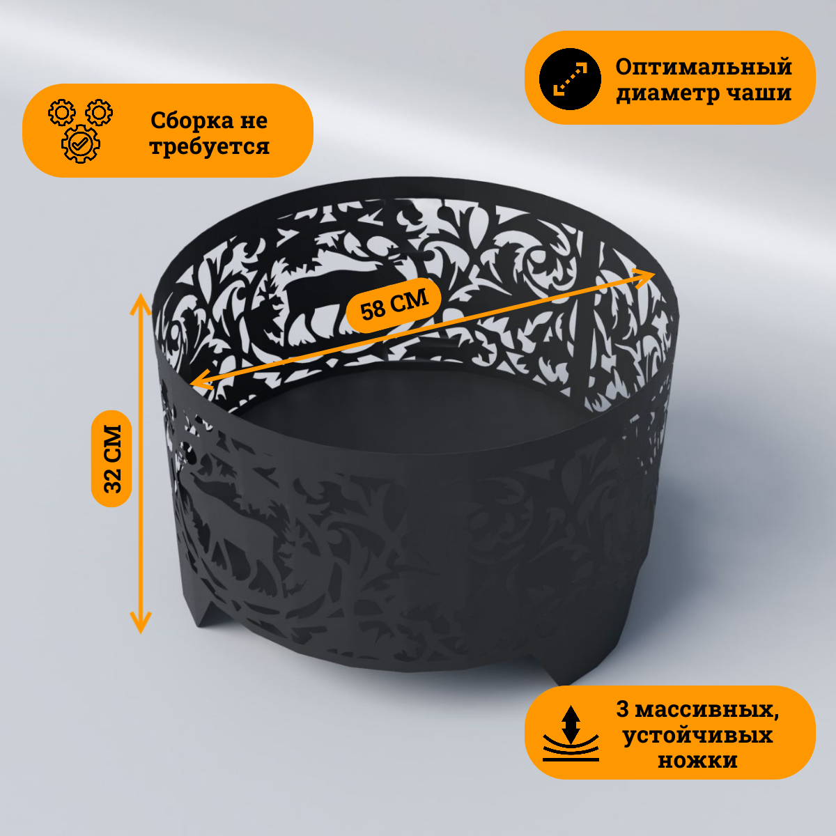 Купить Костровая чаша "В лесу 2", 60см, сталь 3мм, жаропрочная до 1200