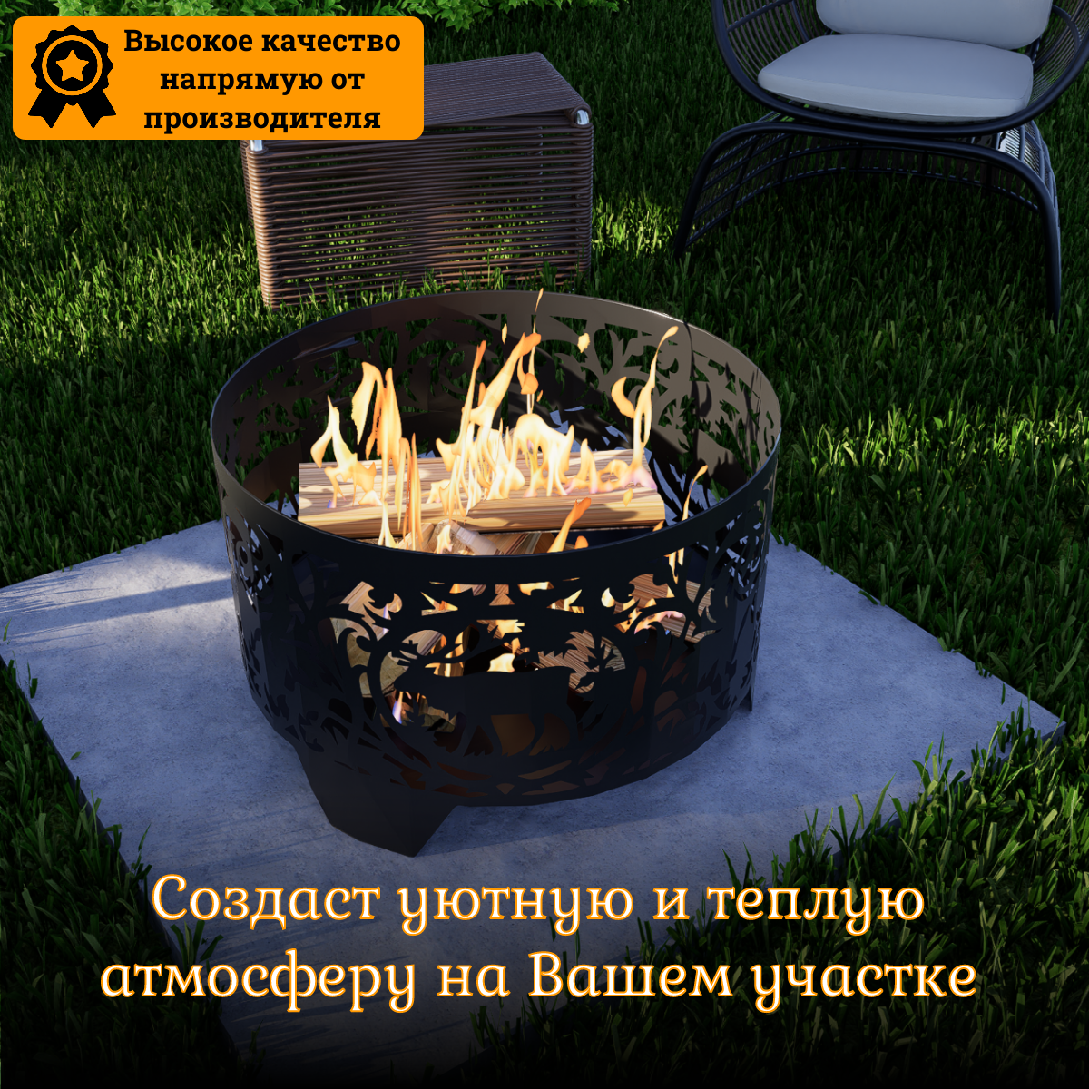 Костровая чаша-мангал Металл и Пламя, сталь 3мм, 50см х 50см, с зольником