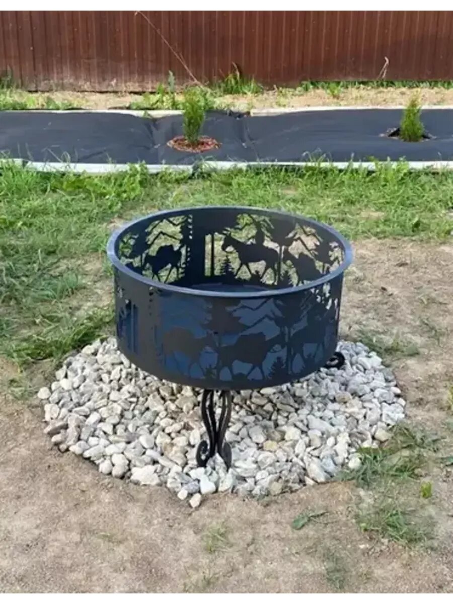 Костровая чаша очаг-сфера с рисунком Лесная сказка из стали 4мм