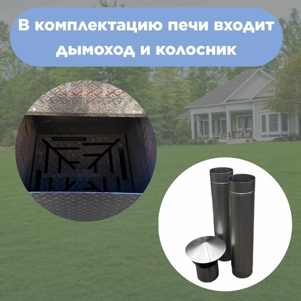 Бочка для сжигания мусора 150л с колосником и дымоходом, сталь 3 мм интересное:
