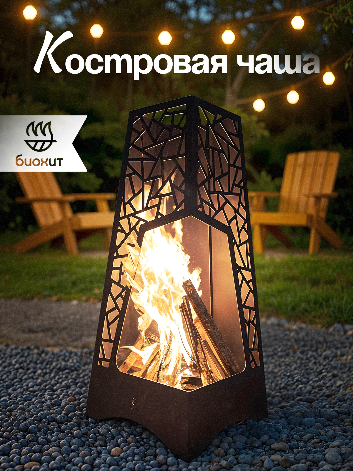 Вертикальная костровая чаша - очаг Биохит Нейт 50 х 50 х 115 см интересное: