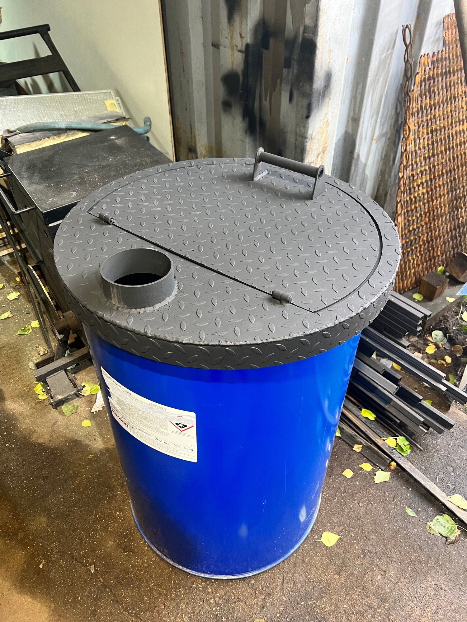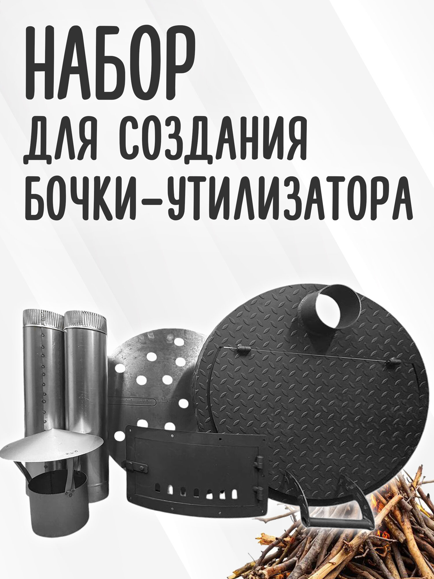 Набор Крышка на бочку 200 литров для сжигания мусора диаметр 61 см, сталь 3 мм. Дверца , колосник , дымоход интересное: