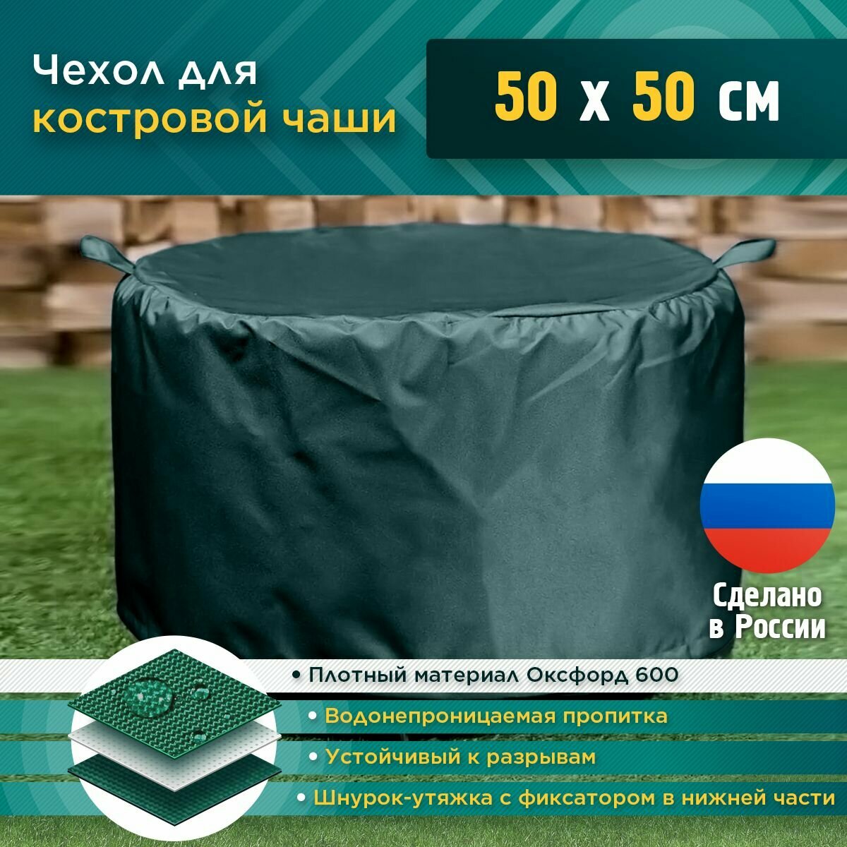 Чехол для костровой чаши круглой, водонепроницаемый JEONIX 50х50 см, зеленый интересное: