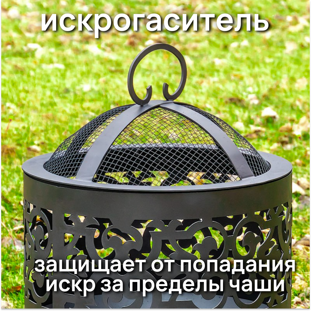 Костровая чаша Ажурная диаметр 50см с решеткой гриль и крышкой искрогасителем, трубчатые ножки / FIRE-HOUSE интересное: