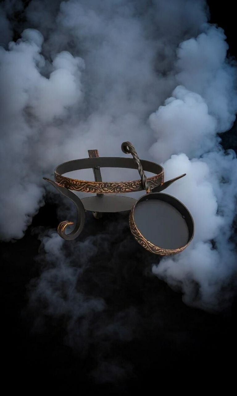 Подставка под садж и черпак "Казаны РФ", кованая, с орнаментом интересное: