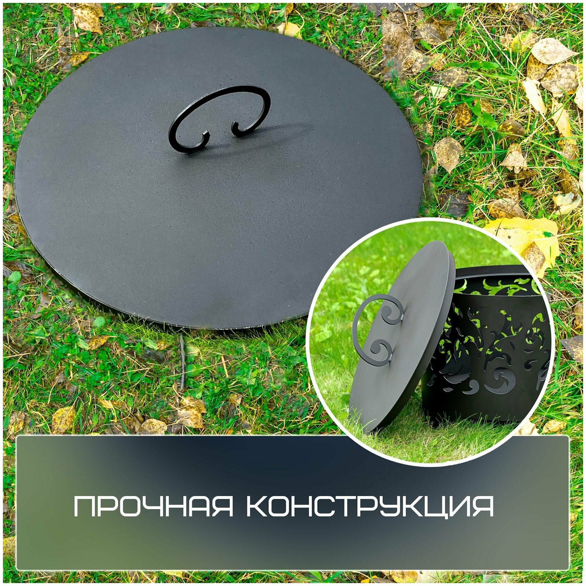Костровая чаша Ажурная диаметр 60 см с крышкой пламегасителем, на трубчатых ножках / Чаша для костра FIRE-HOUSE интересное: