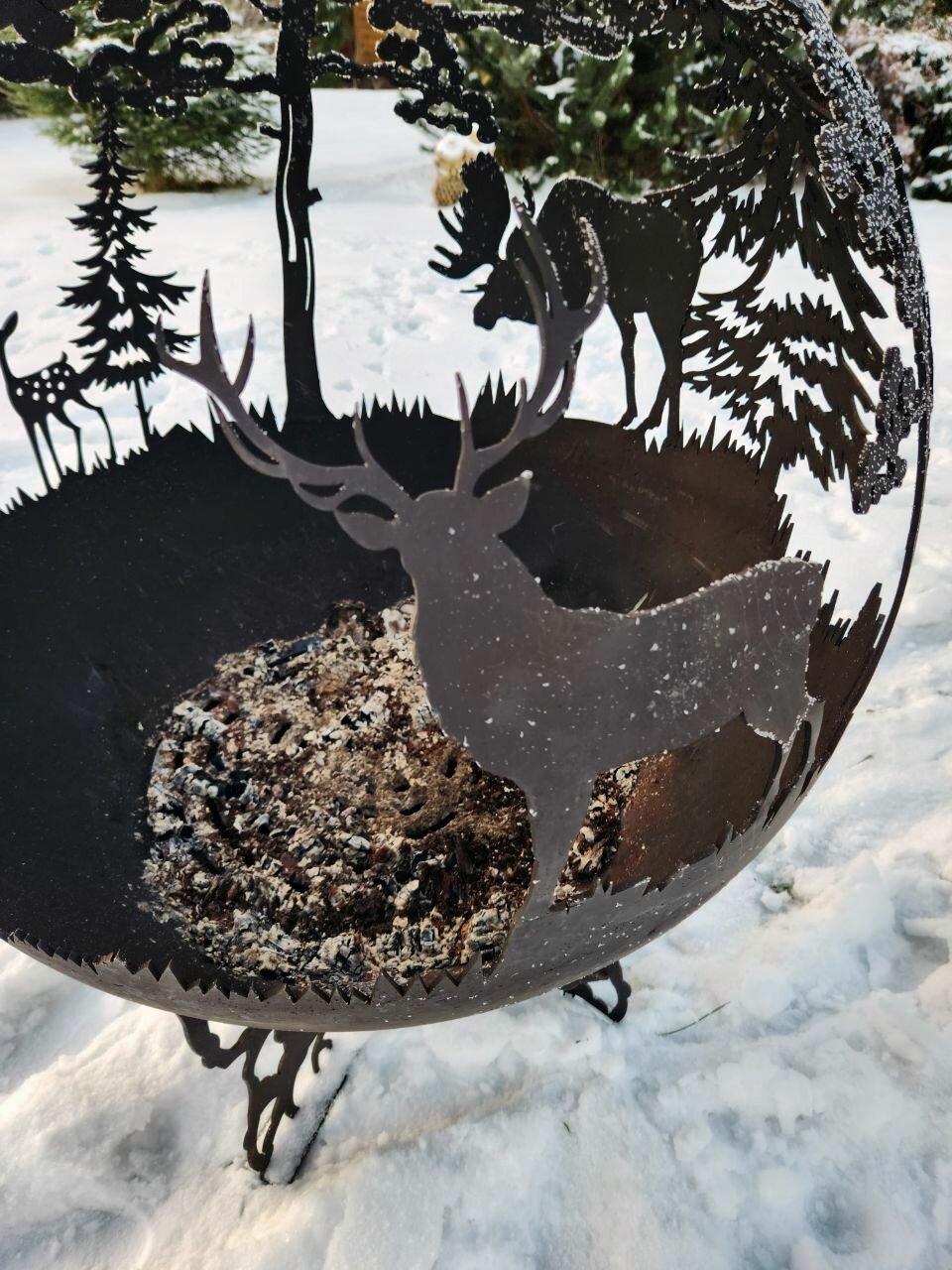 Костровая чаша очаг-сфера с рисунком Лесная сказка из стали 4мм