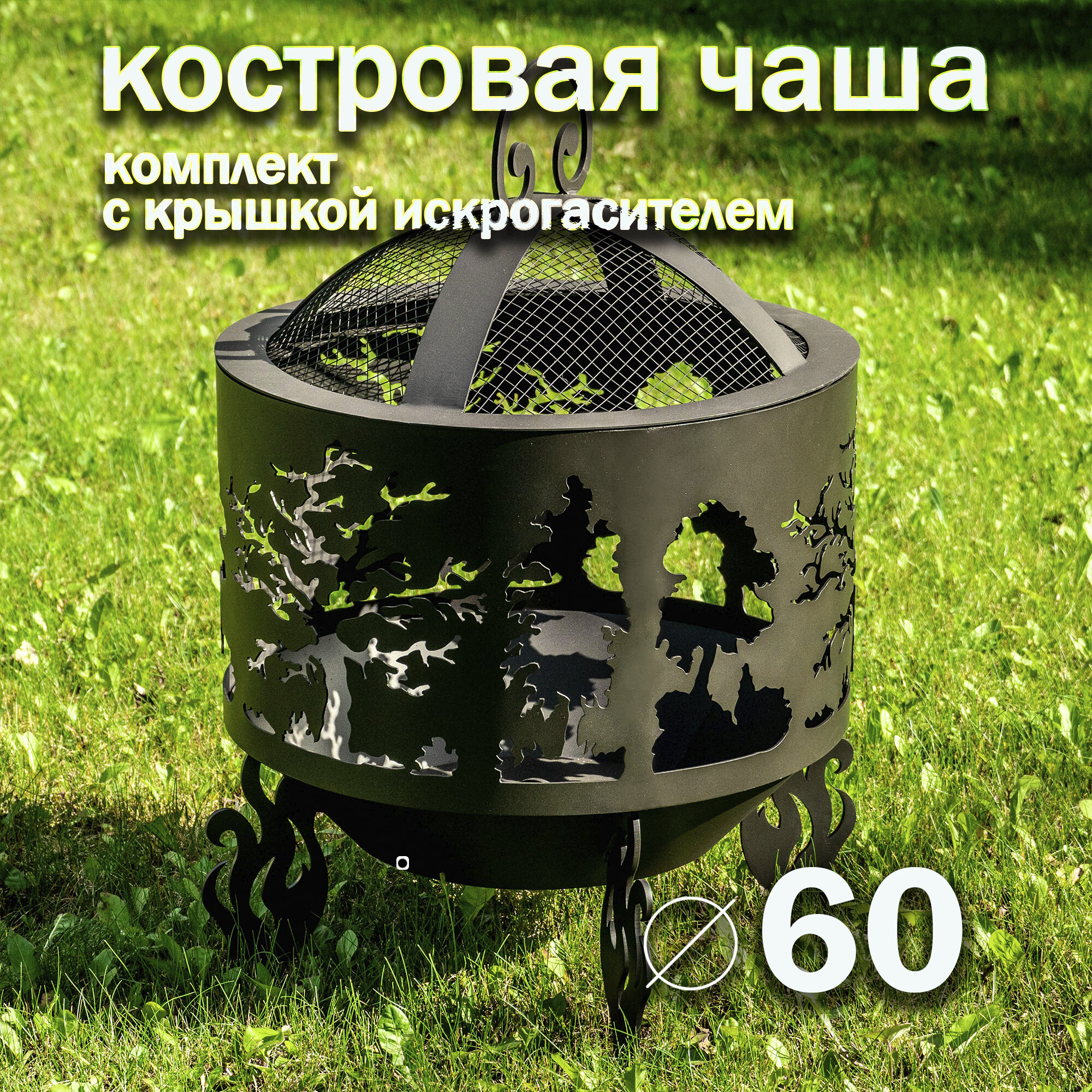 Костровая чаша Деревья диаметр 60 см с крышкой искрогасителем / Чаша для костра FIRE-HOUSE интересное: