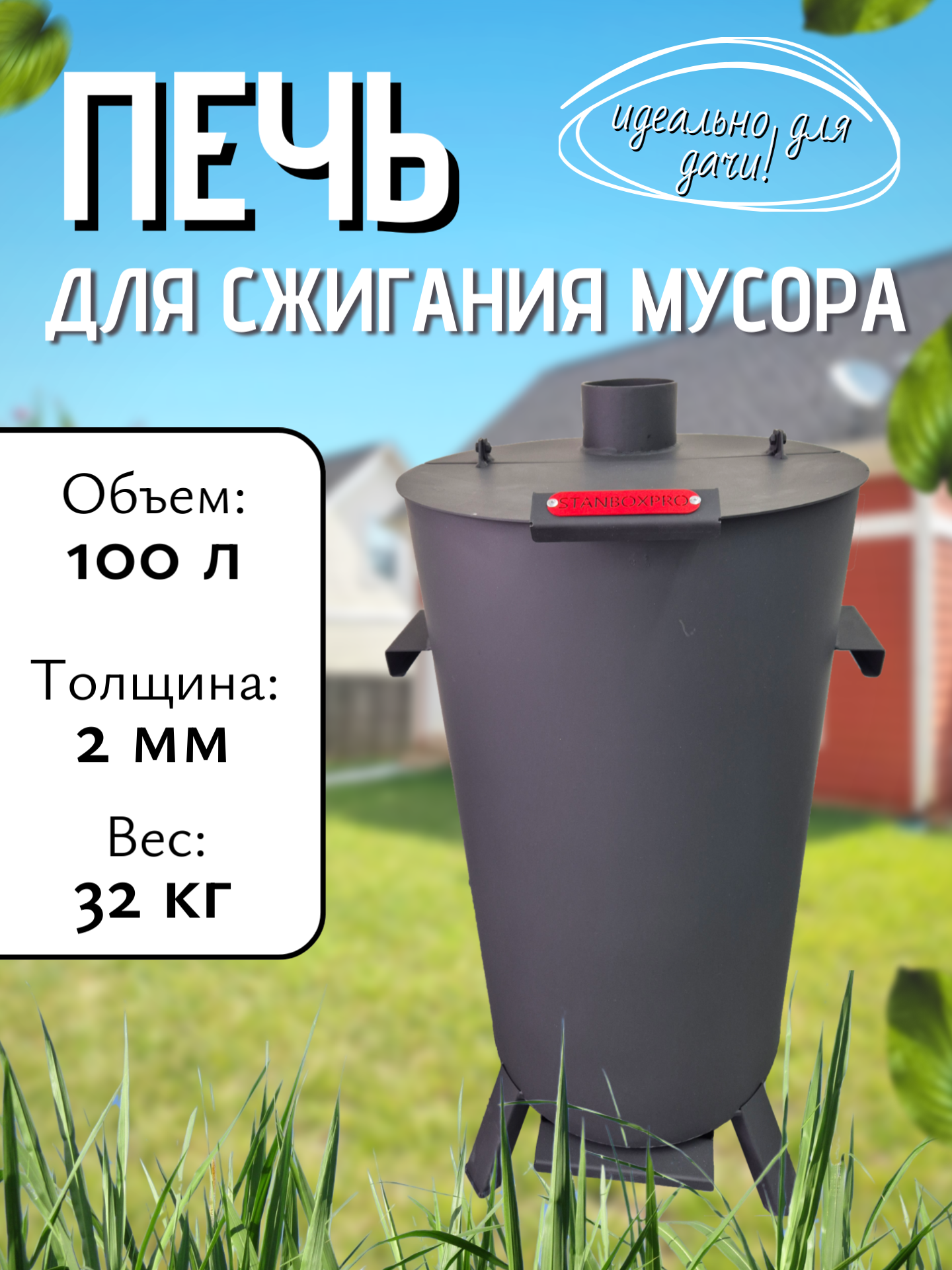 Печь, бочка для сжигания мусора, 100 литров, сталь 2 мм, круглая интересное:
