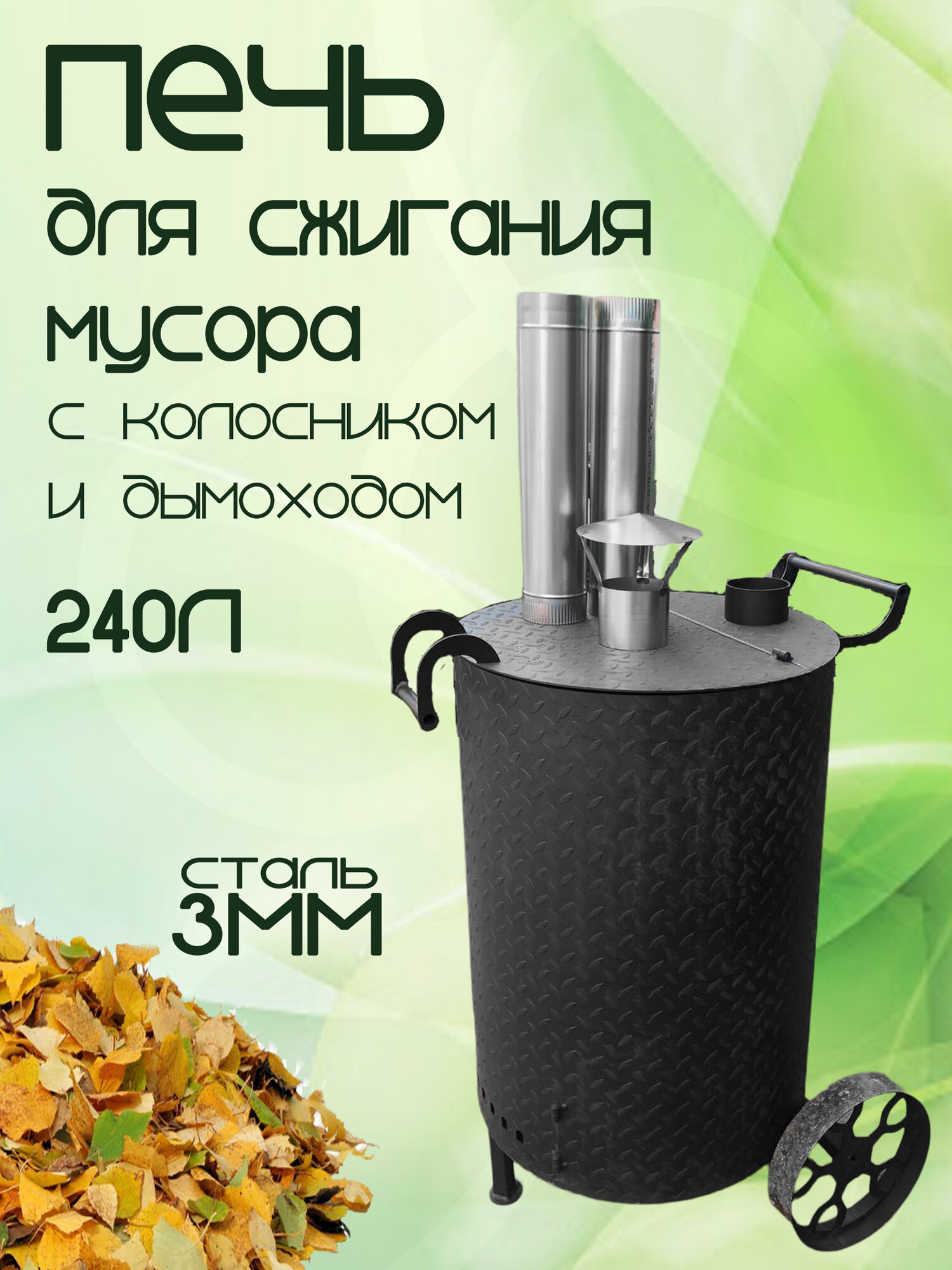 Печь малая для сжигания мусора на дачу, 115 литров, толщина 3мм