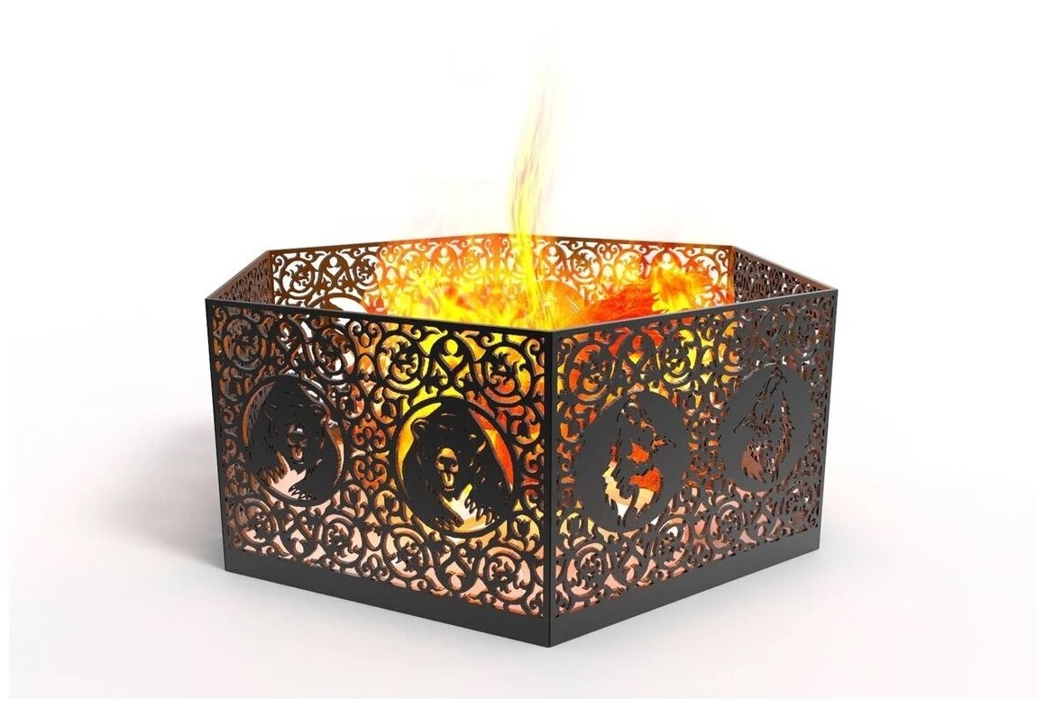 Купить Очаг, чаша для костра, Костровая чаша, Жаровня для улицы Шестигранная Животные - огнеупорная краска