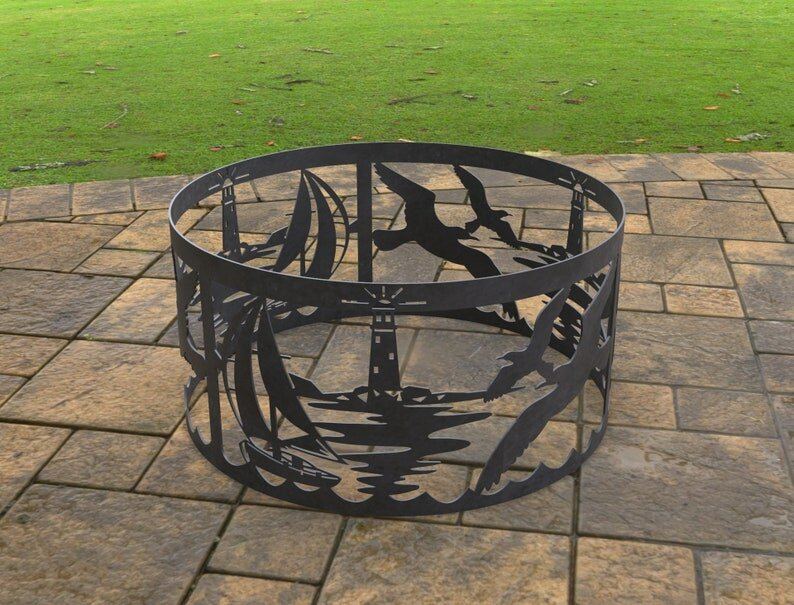 Очаг, чаша для костра, костровая чаша, жаровня для улицы, яма для дачи, круглая - Маяк, чайки, корабль интересное: