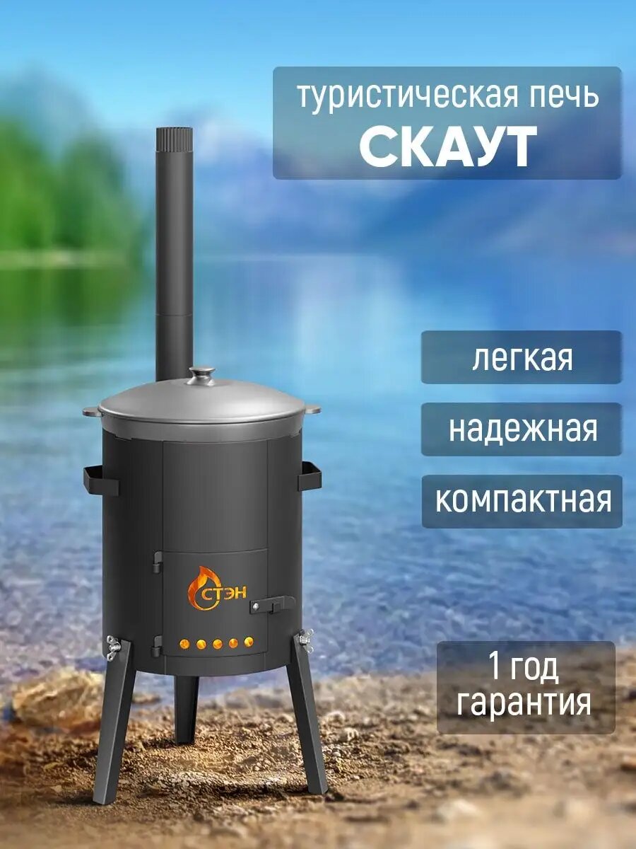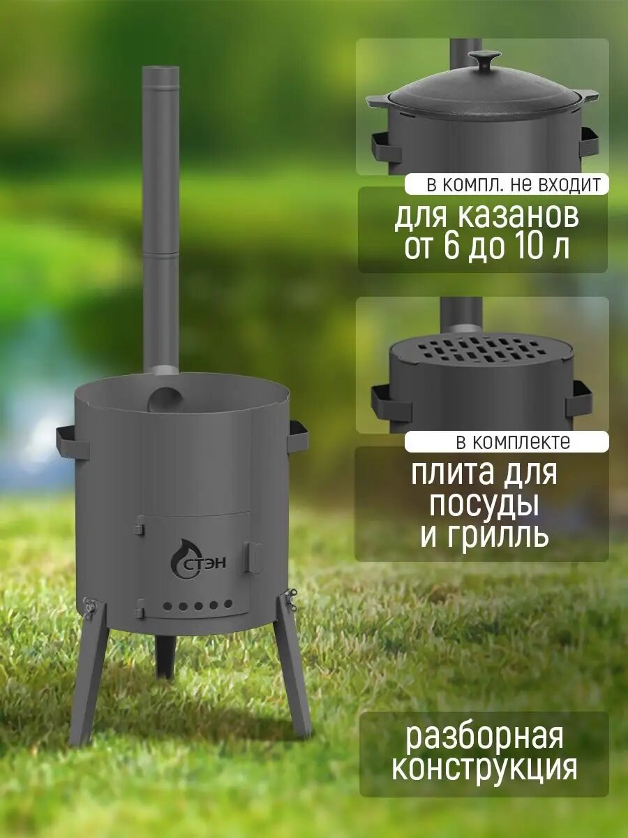 Печь для казанов СТЭН "Скаут-320" разборная, сталь 2мм, 6-10л, для дров, черная интересное: