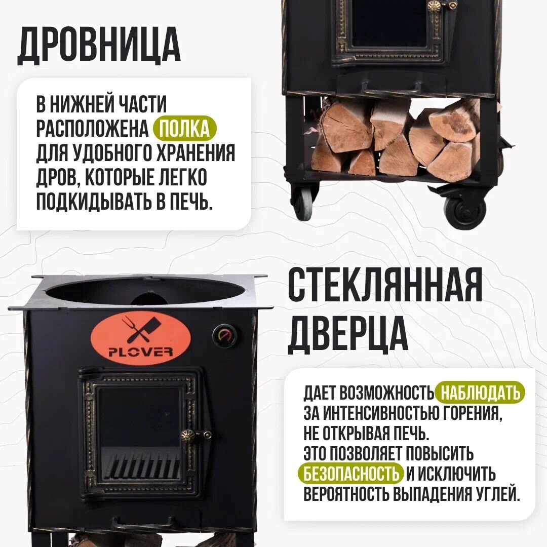 Универсальная печь для казана 5мм Plover, мангал, гриль со стеклянной дверцей интересное: