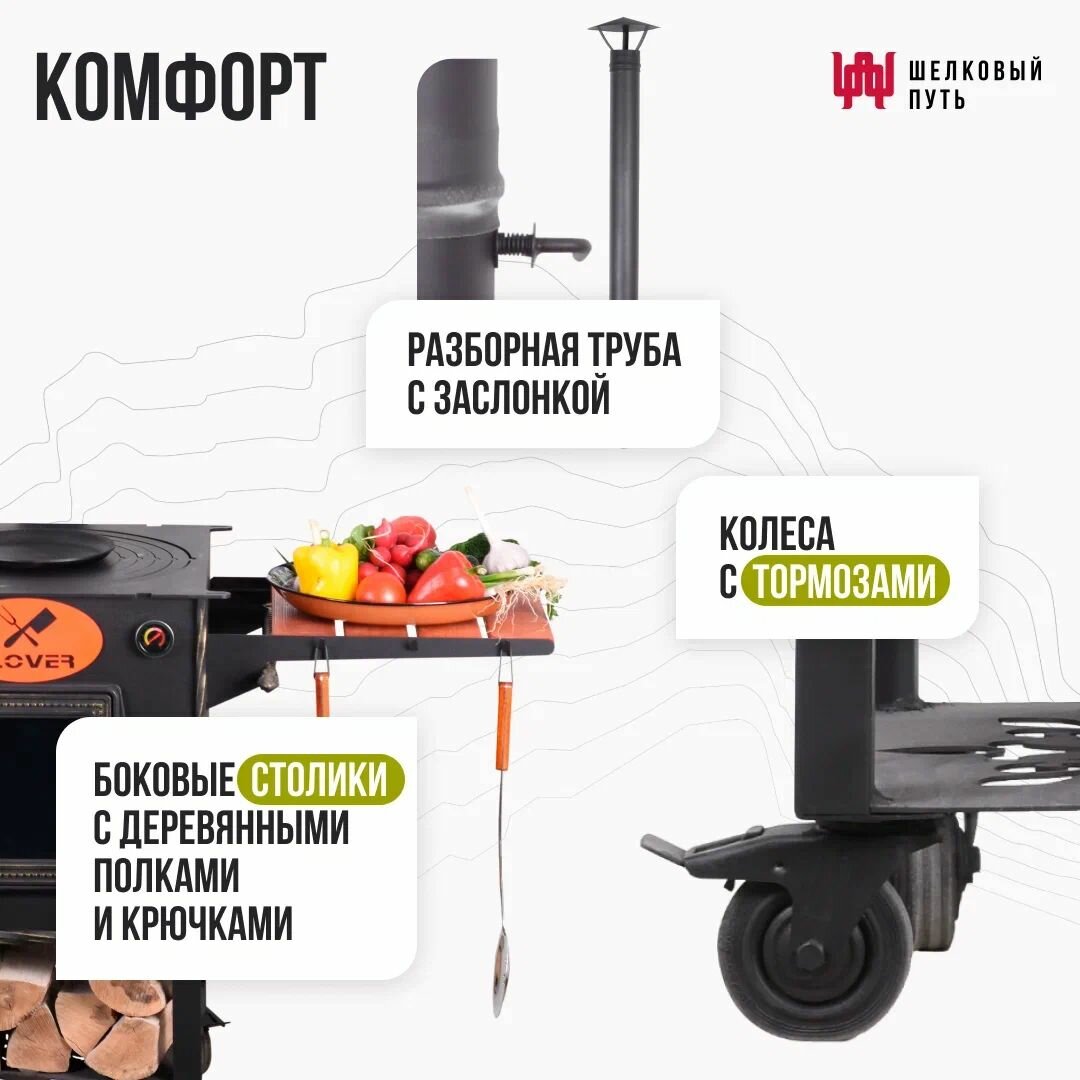 Универсальная печь для казана 5мм Plover MINI, мангал, гриль для казанов до 12 литров со стеклянной дверцей интересное:
