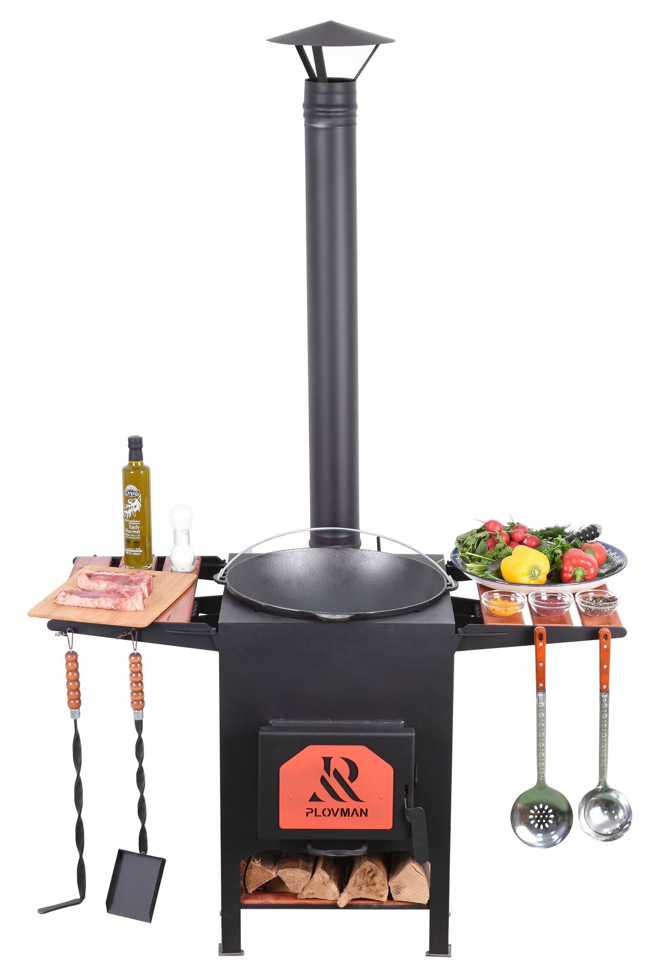 Печь Plovman для казанов на 22 литров + сегментные кольца, решетка гриль, мангал встраиваемый
