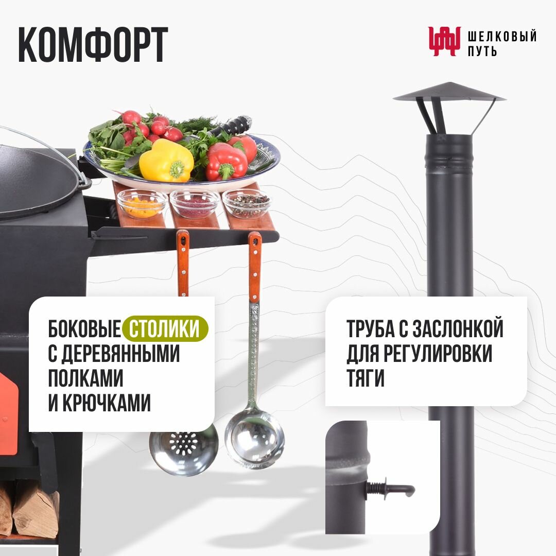 Печь для казана объемом 10 литров с ручками, съемные ножки, зольник
