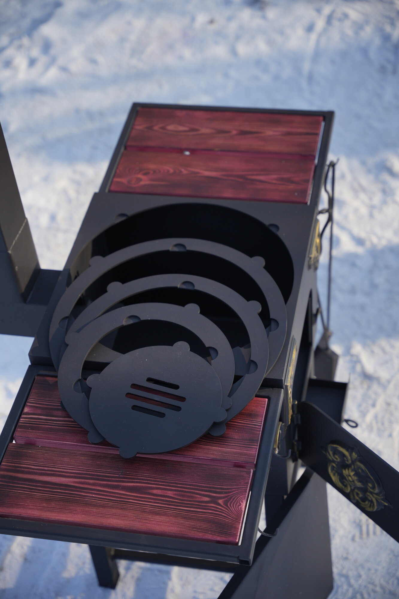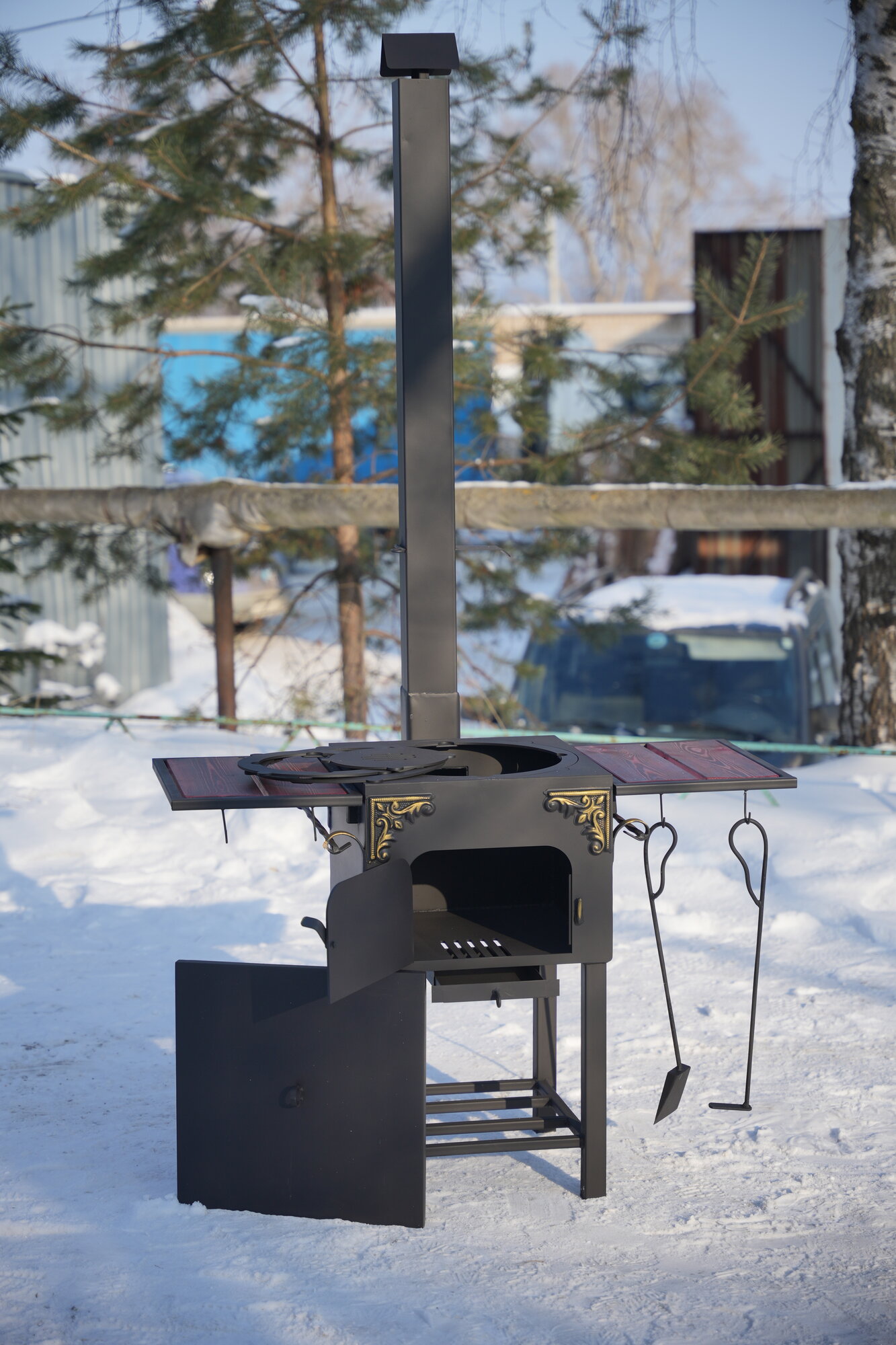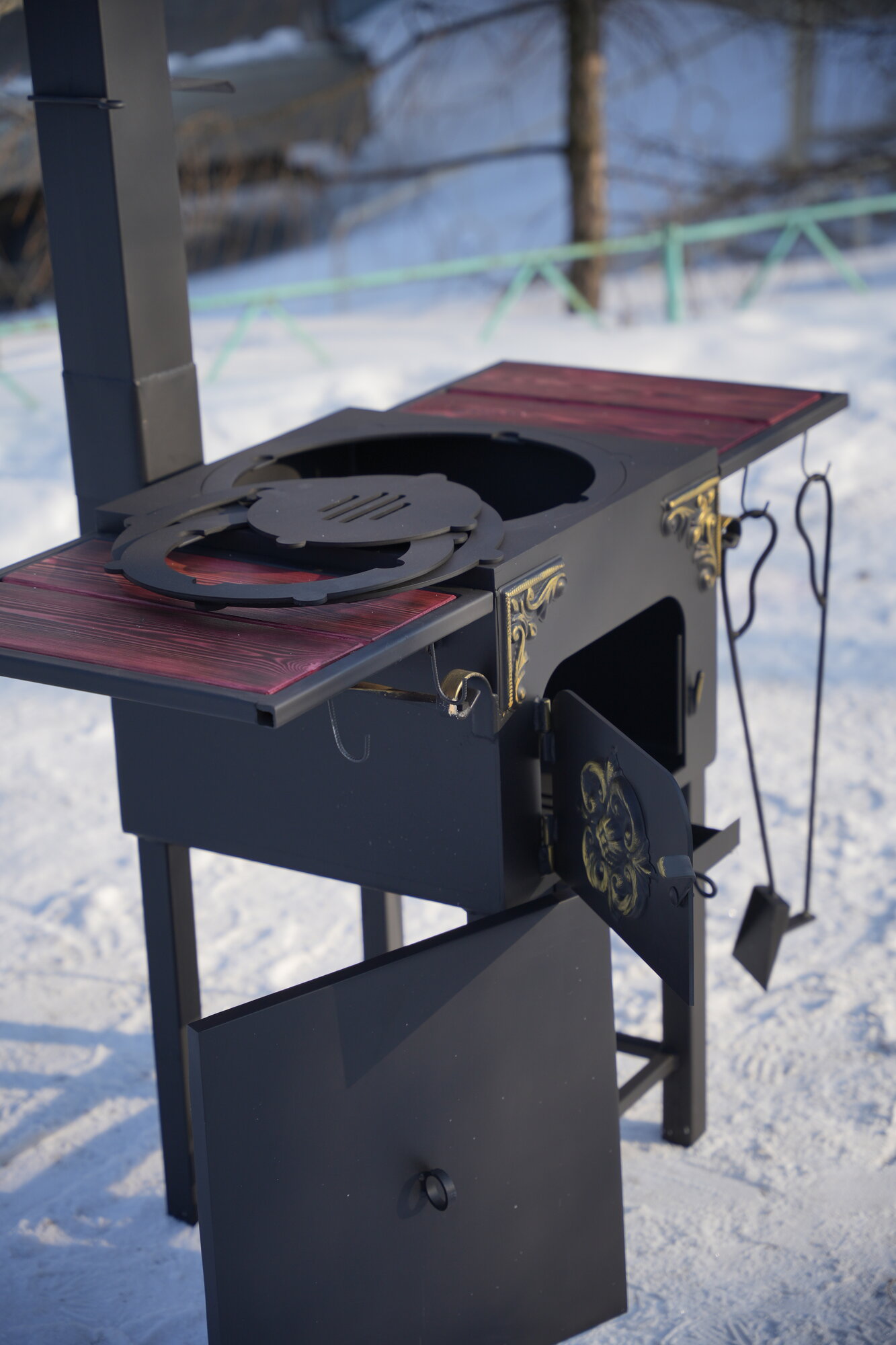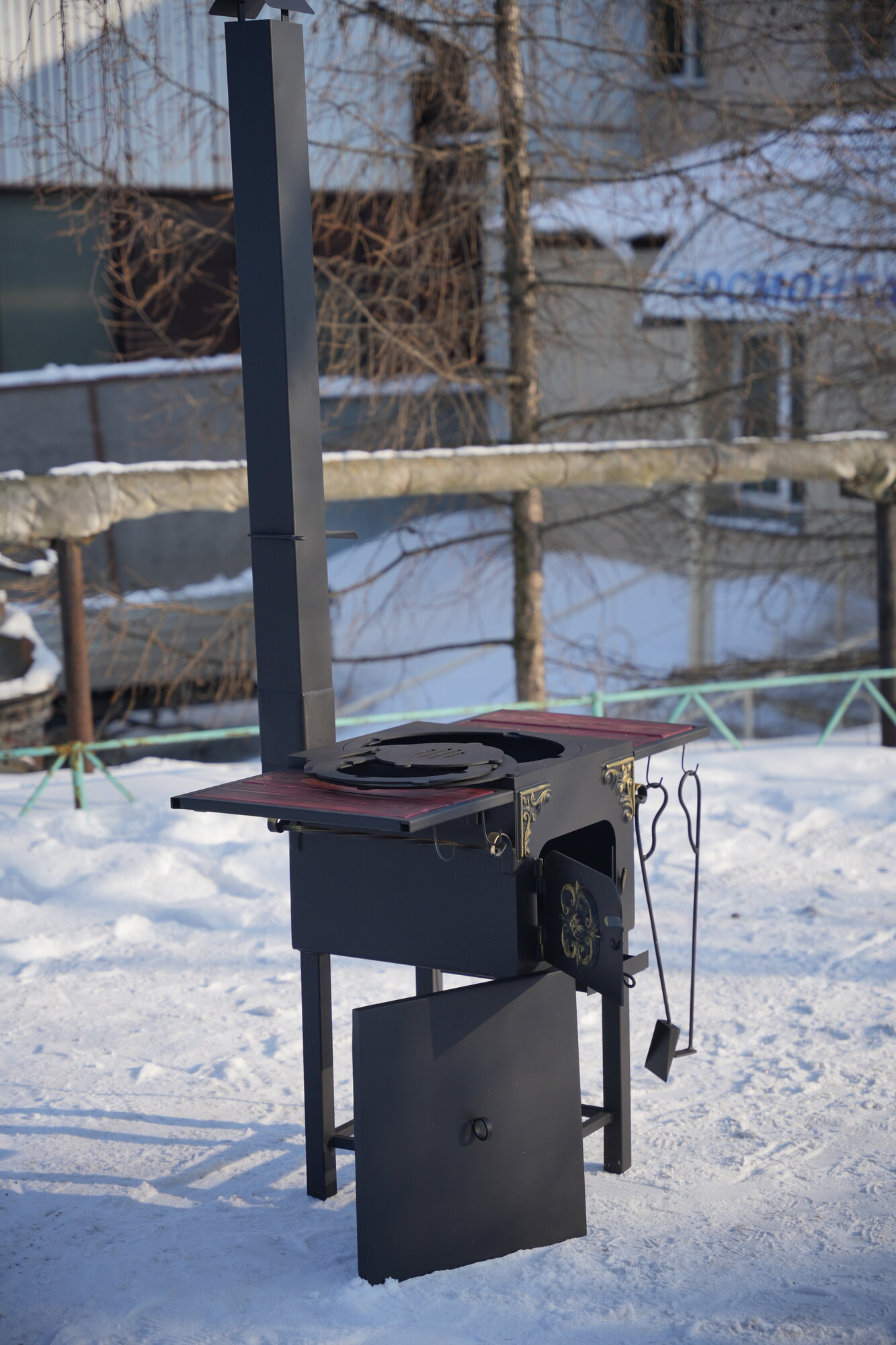 Купить Усиленная печь 5мм под казан 4-22литра. Толстостенная печка с трубой. Печь подказанник с полочками и съёмными кольцами