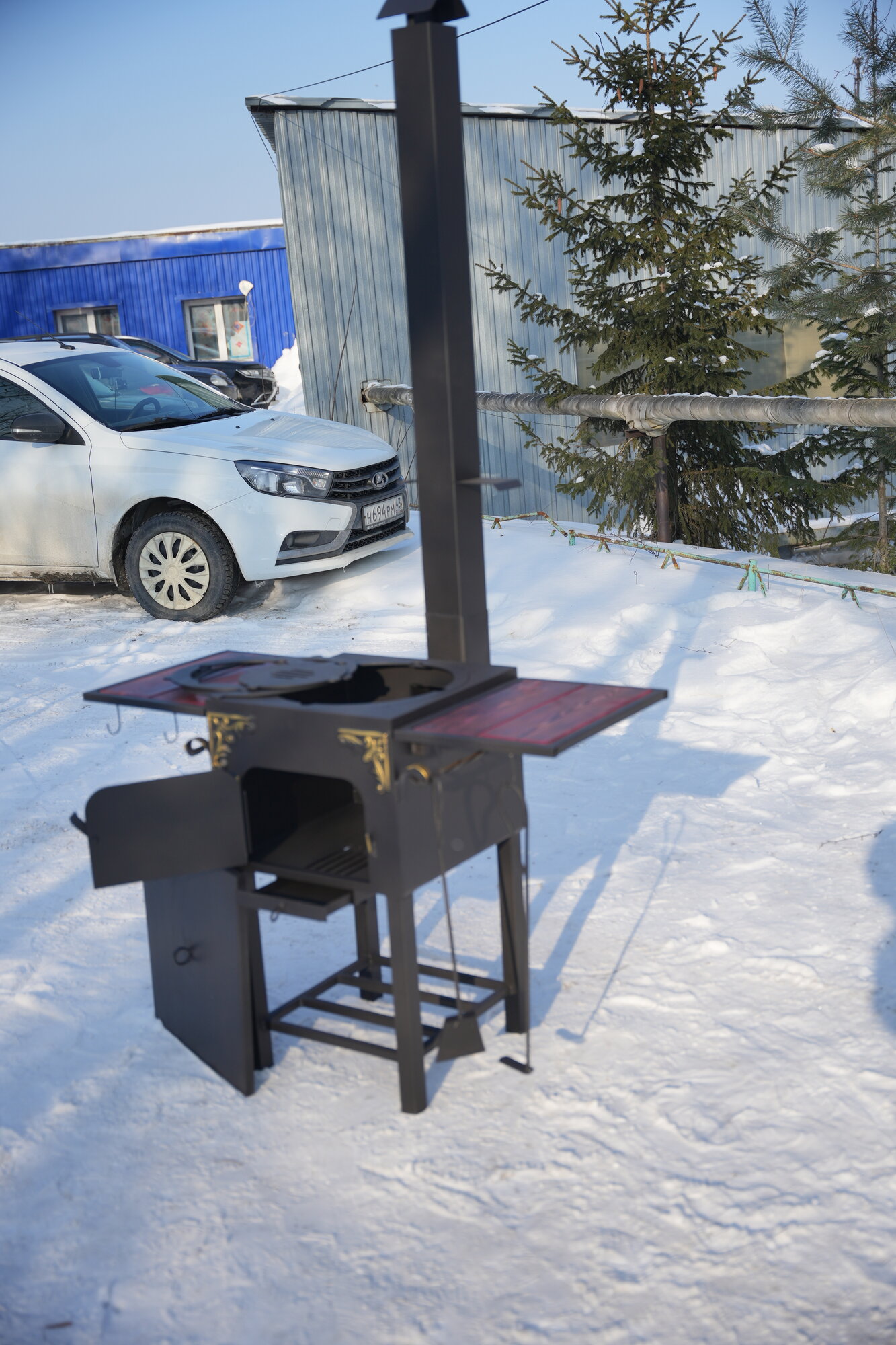 Усиленная печь 5мм под казан 4-22литра. Толстостенная печка с трубой. Печь подказанник с полочками и съёмными кольцами интересное: