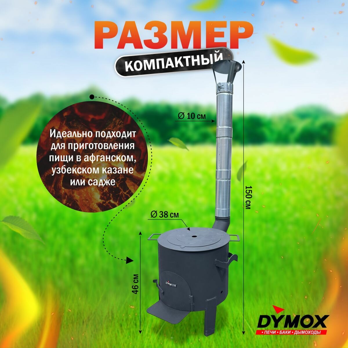 Печь для казана объемом 10 литров с ручками, съемные ножки, зольник