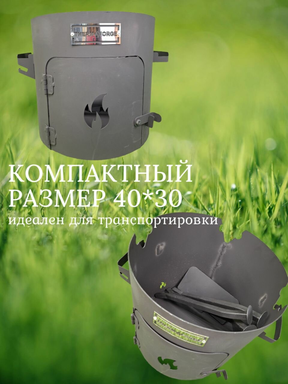 Печь для казана объемом 10 литров с ручками, съемные ножки, зольник