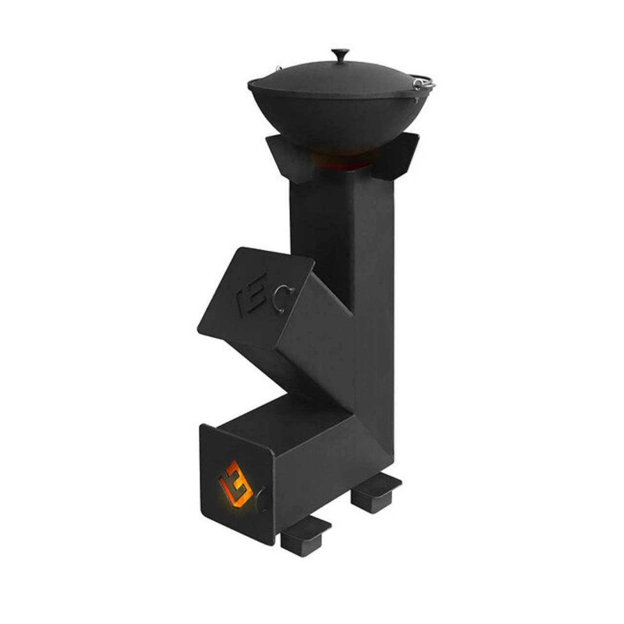 Печь для казана "Ракета 1" Везувий, сталь, двухподставочная, дверца, черный цвет интересное: