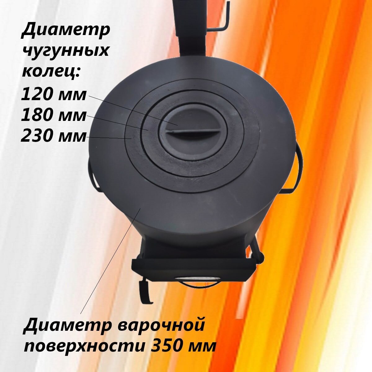Печь для казана объемом 10 литров с ручками, съемные ножки, зольник