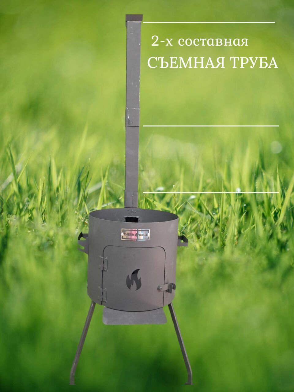Печь для казана объемом 10 литров с ручками, съемные ножки, зольник