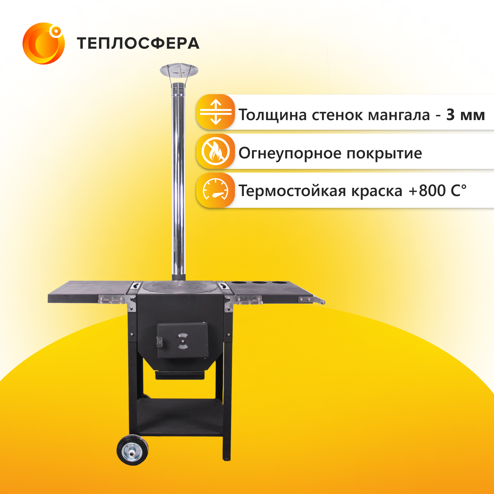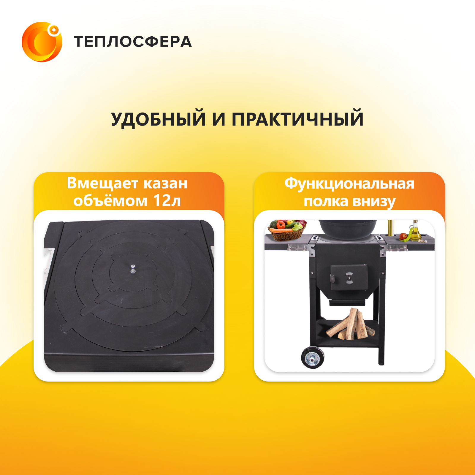 Печь для казана объемом 10 литров с ручками, съемные ножки, зольник