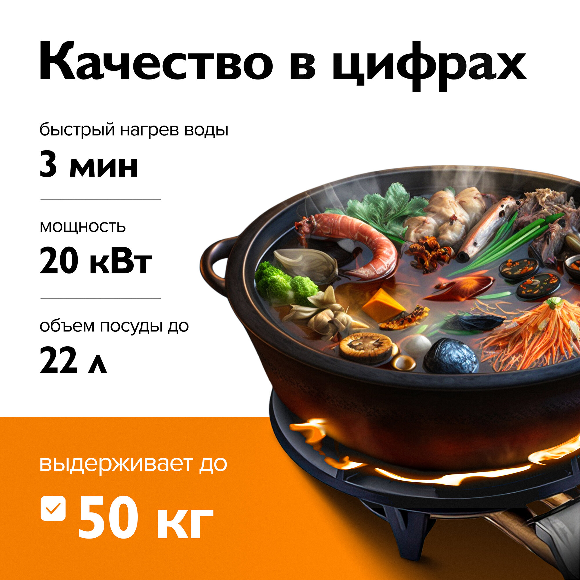 Печь для казана объемом 10 литров с ручками, съемные ножки, зольник