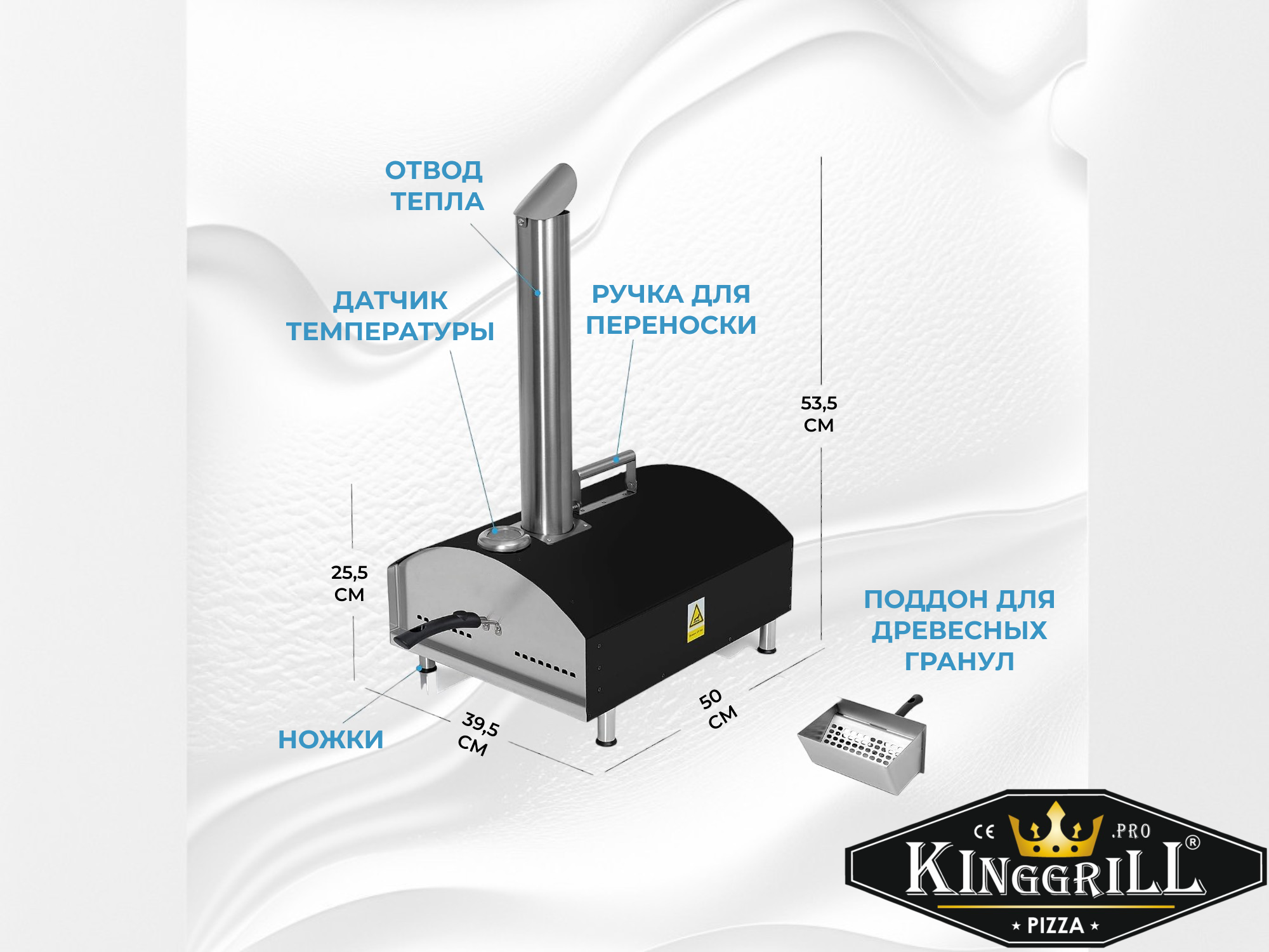 Печь-пицца пелетная KiNGGRiLL серия MASTER модель ChG-13/33/paddle нержавеющая сталь, камень 33х33, лопатка для пицы интересное: