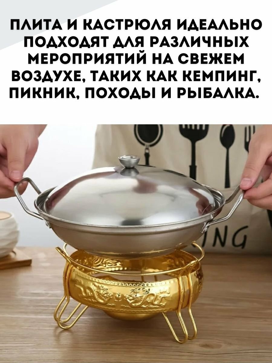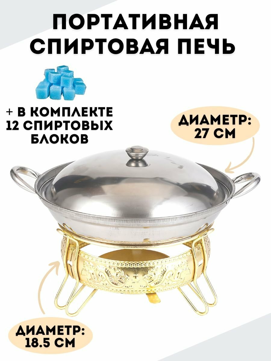 Портативная спиртовая печь Luxury Gift 27 см, для походов и пикников, подставка цвет золотой, 12 блоков интересное: