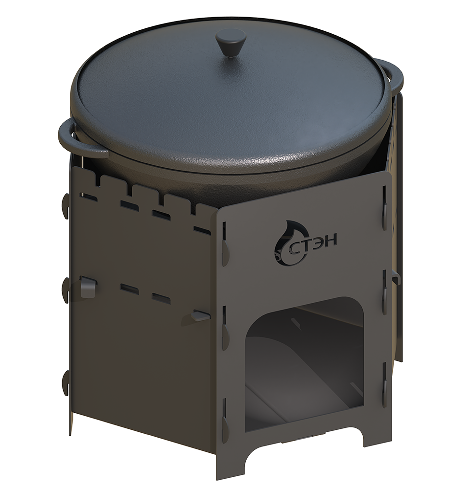Печь для казана объемом 10 литров с ручками, съемные ножки, зольник