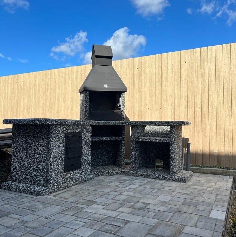 СохранитьПечь-барбекю Комфорт, угловая, 1185х640х2150 мм, с топкой 56 см, фактура Черное и белое интересное: