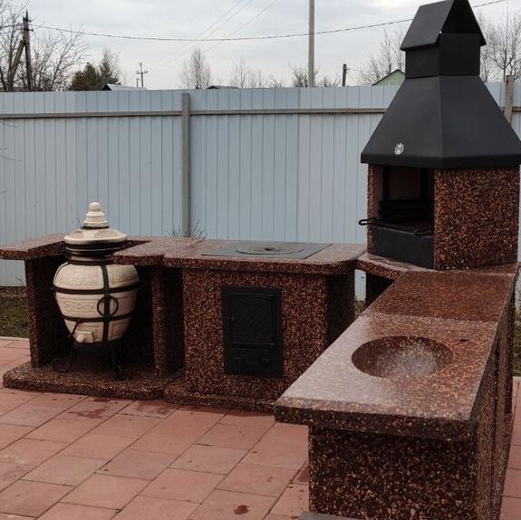 Печь-барбекю Комфорт, угловая, 1185х640х2150 мм, с топкой 56 см, фактура Змеевик
