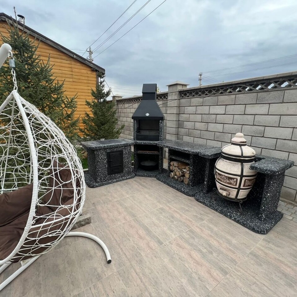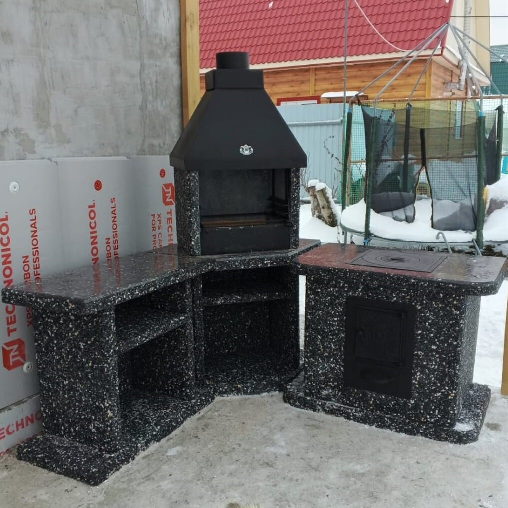 Печь-барбекю Комфорт, угловая, 1185х640х2150 мм, с топкой 56 см, фактура Черное и белое