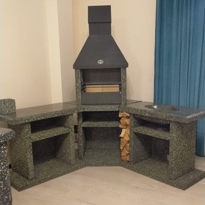 СохранитьПечь-барбекю Комфорт, угловая, 1185х640х2150 мм, с топкой 56 см, фактура Змеевик интересное: