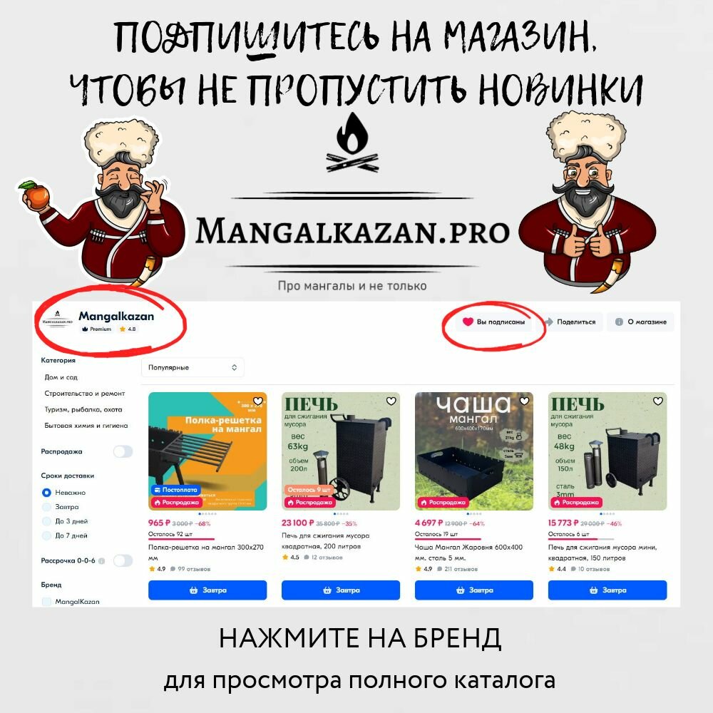 Печь для казана 370мм с колосником и дымоходом, толщина стали 3мм интересное:
