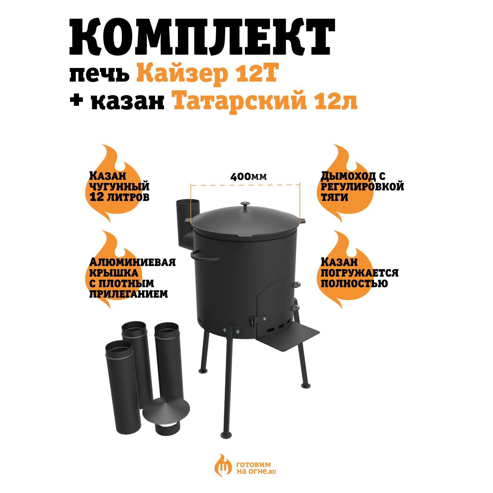 Комплект: Казан 12л. (Татарстан) + Печь "Кайзер-12Т" с дымоходом интересное: