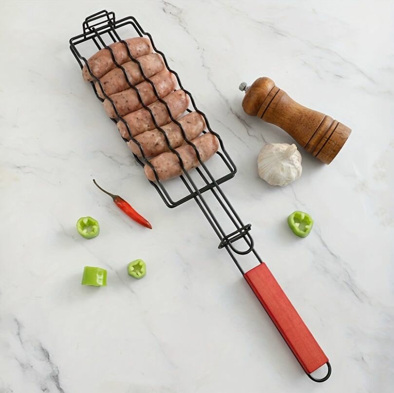 Решетка для сосисок на мангале и гриля, решетка гриль, длина 28 см, ширина 10 см интересное: