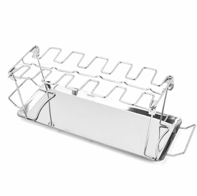 Решетка складная с подносом для куриных ножек и крылышек для гриля, барбекю, духовки (33.8*12.5см) интересное: