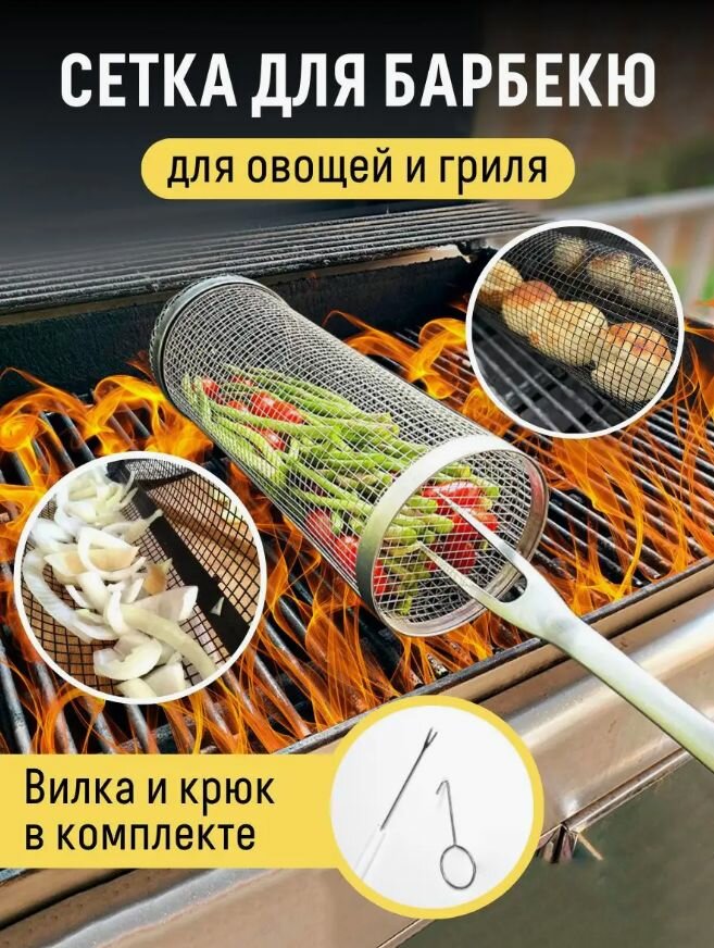 Решетка-гриль для овощей в форме цилиндра, грибов, мяса и курицы. Мангальная сетка 30 см интересное: