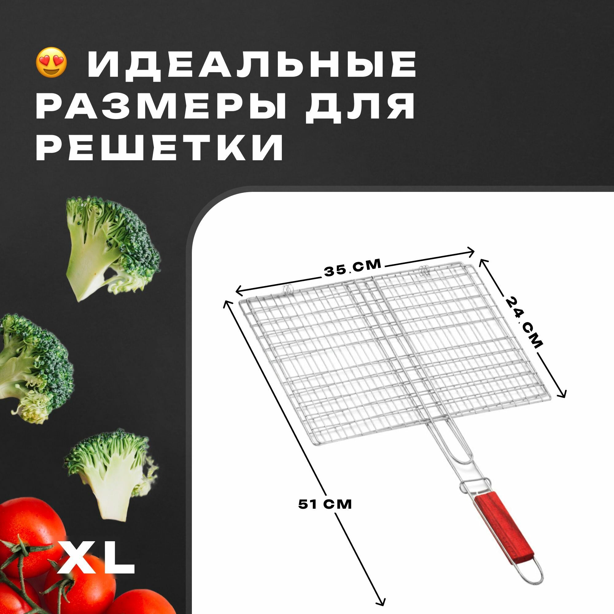 Решетка для мангала, гриля и барбекю, Решетка-гриль со съемной ручкой XXL