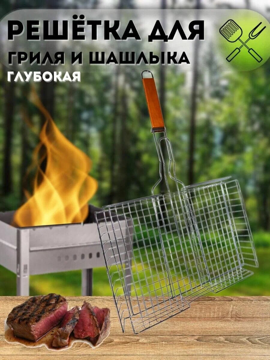 Решетка для барбекю Ecos RD-102D глубокая, регулируемая глубина, 31х24х5 см, общая длина 65 см