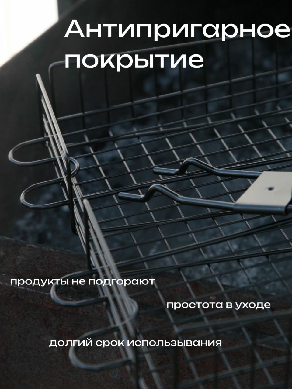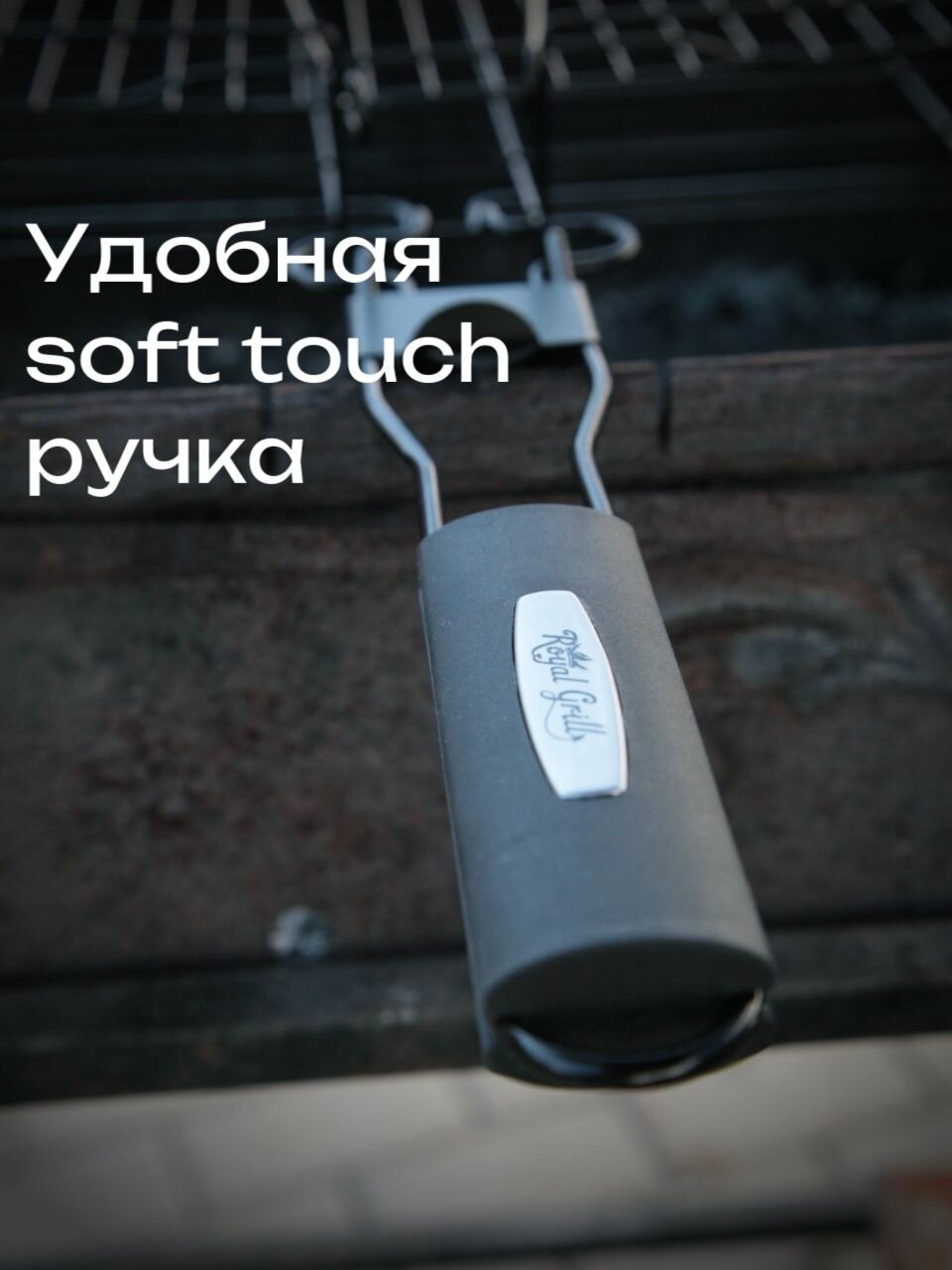 Решетка гриль для мангала ROYALGRILL. 31х33 см с антипригарным покрытием со съемной ручкой интересное: