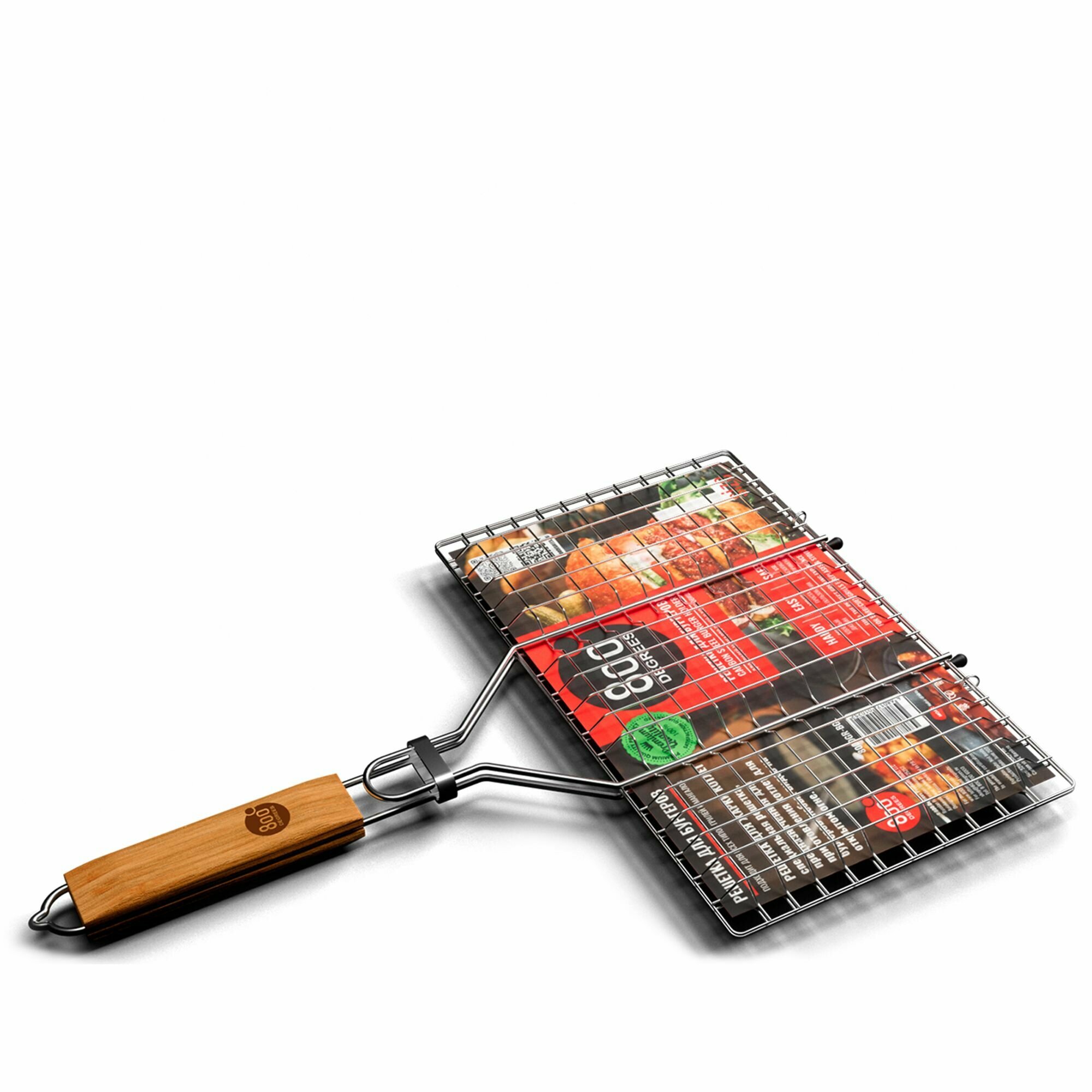 Решетка для барбекю ECOS RD-117W (рыбная, 3 секции, р-р 28х28х1,5см, общая длина 63 см, хром.)