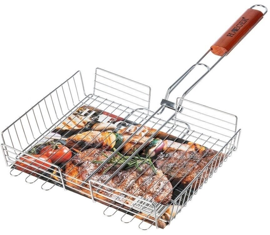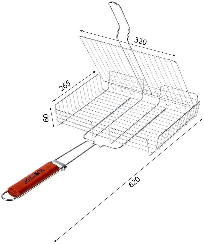Решетка для барбекю ECOS RD-117W (рыбная, 3 секции, р-р 28х28х1,5см, общая длина 63 см, хром.)