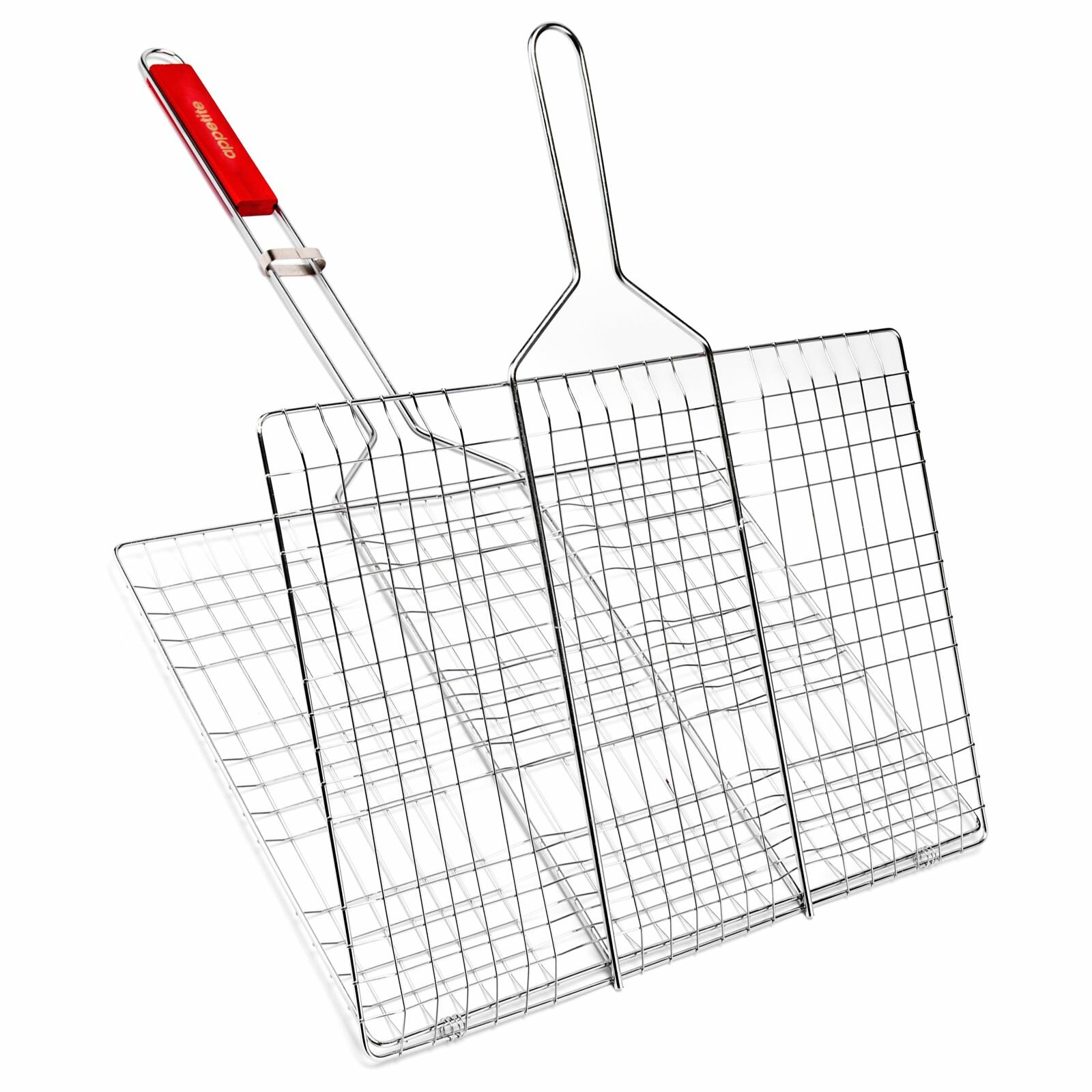 Решетка для барбекю ECOS RD-117W (рыбная, 3 секции, р-р 28х28х1,5см, общая длина 63 см, хром.)