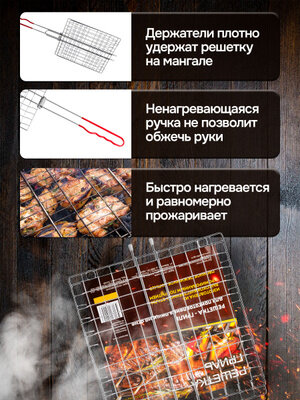 СохранитьРешетка для мангала и шашлыка , решётка для гриля 23х23см хромированная интересное: